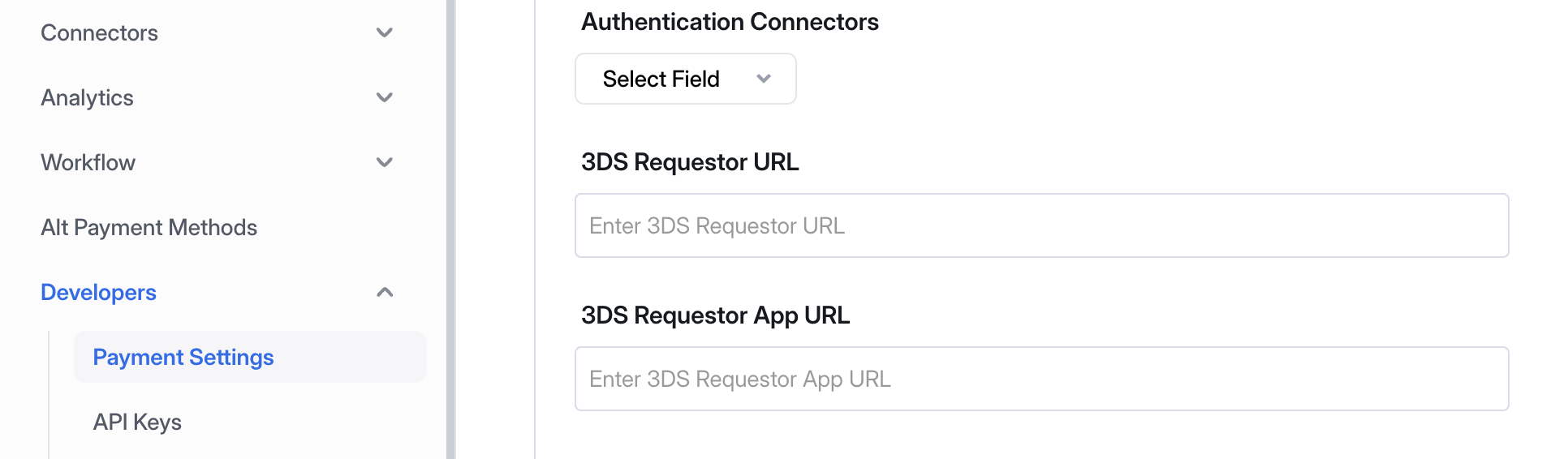 - Under Developers -> Payment Settings -> Add Authentication Connector and its relevant details.