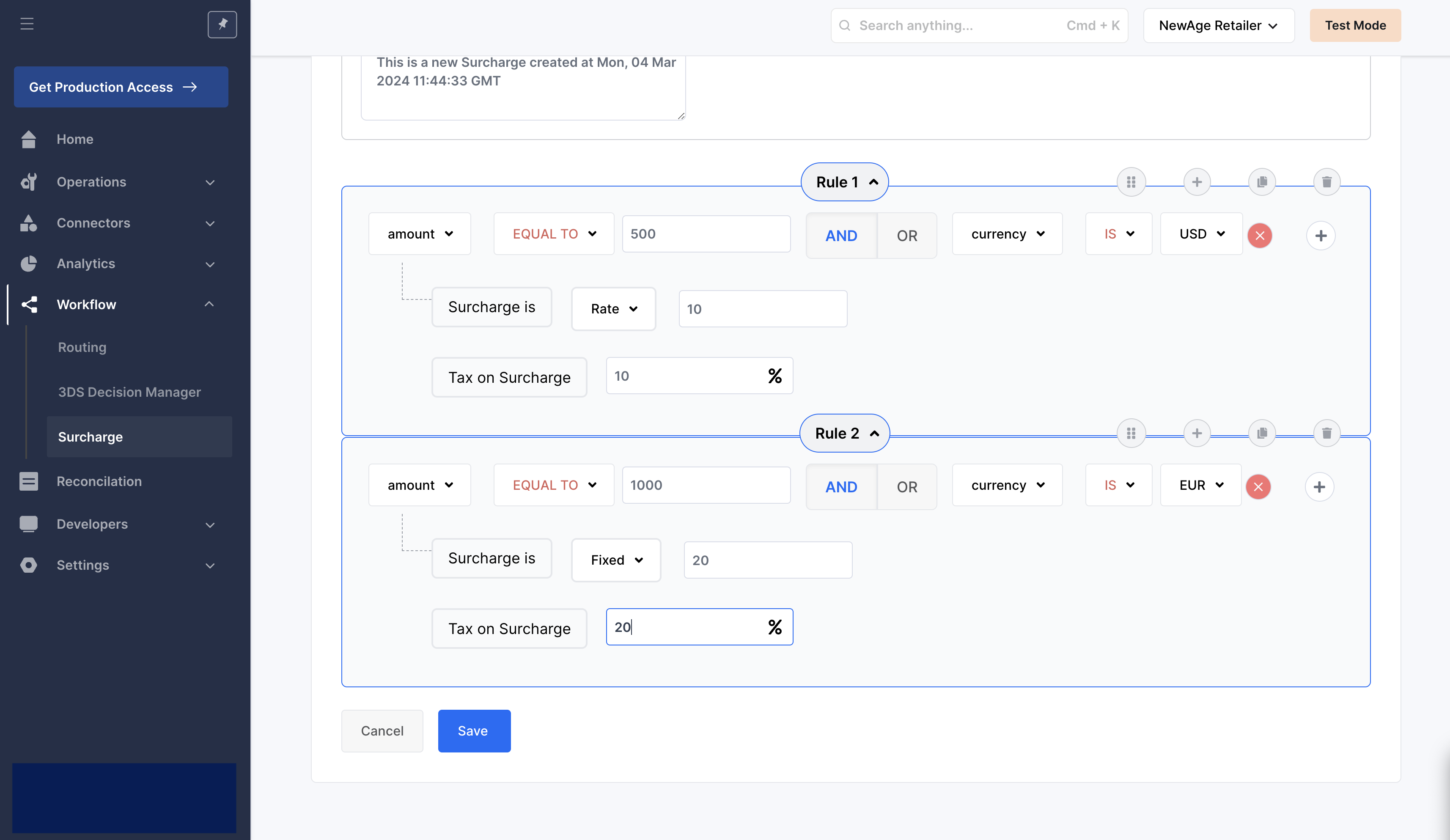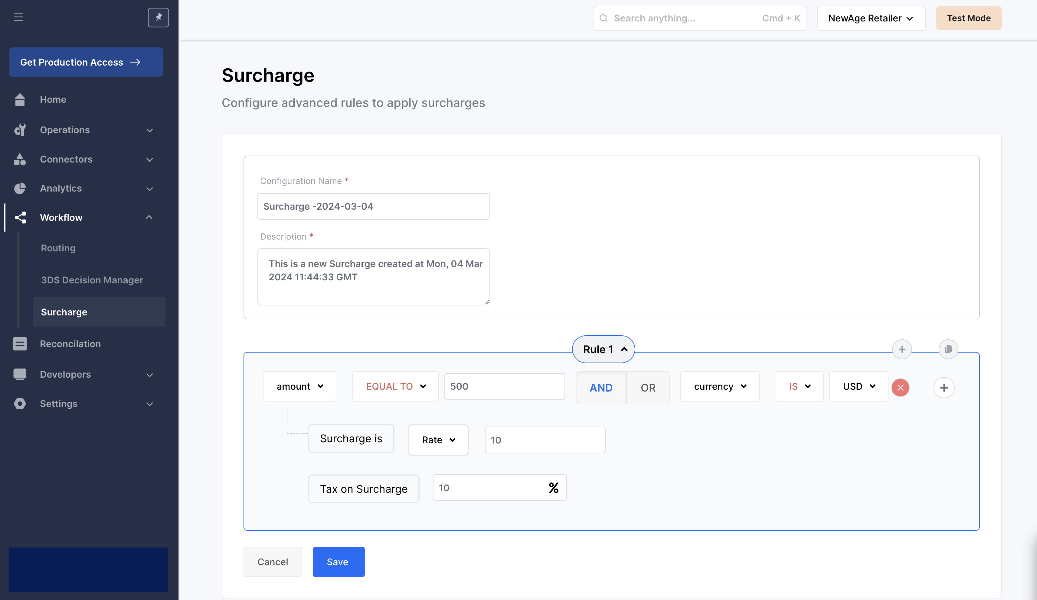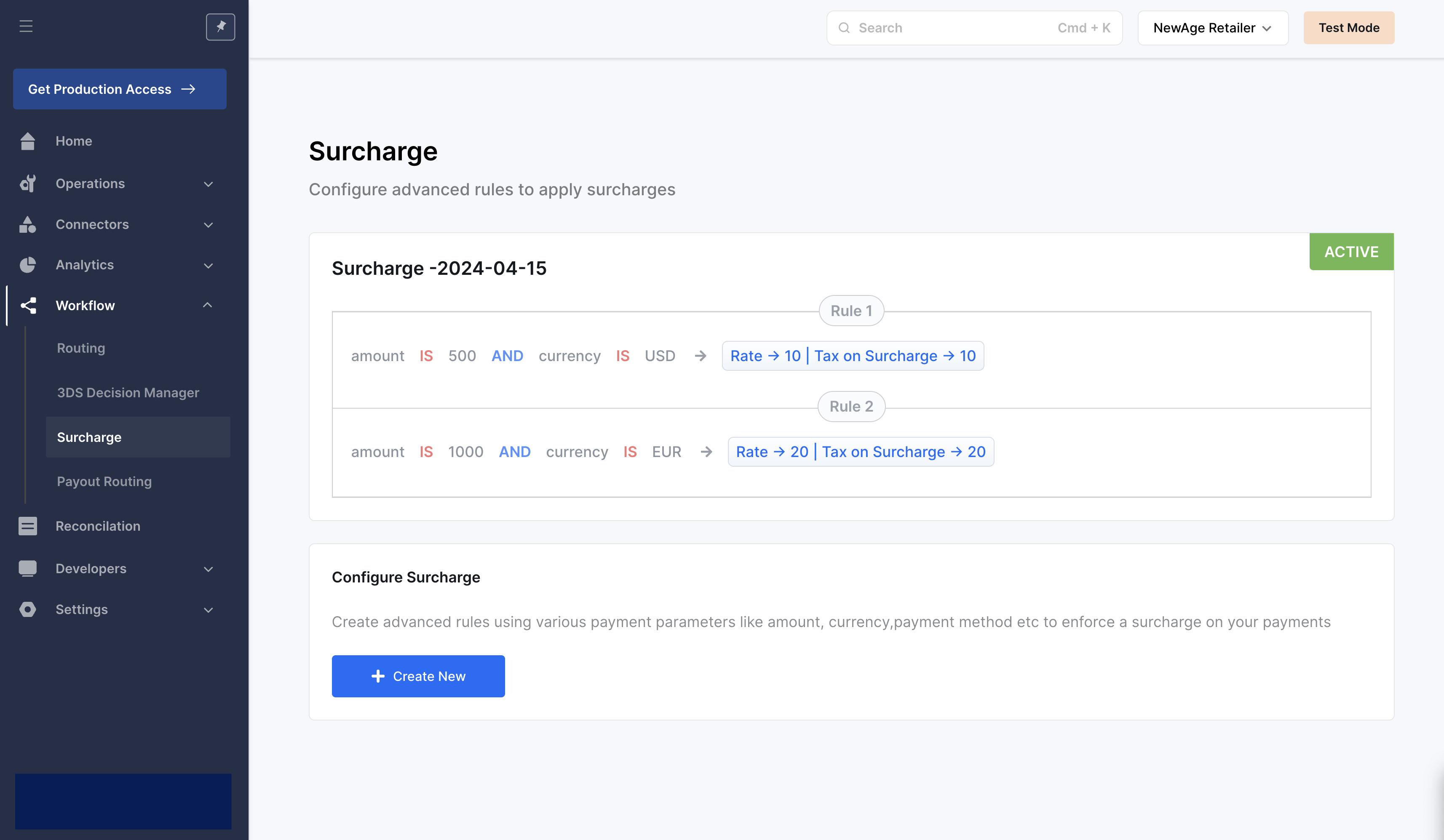 Step 7: Your rule is now successfully configured and Surcharge would be applied to all payments conforming to this rule.