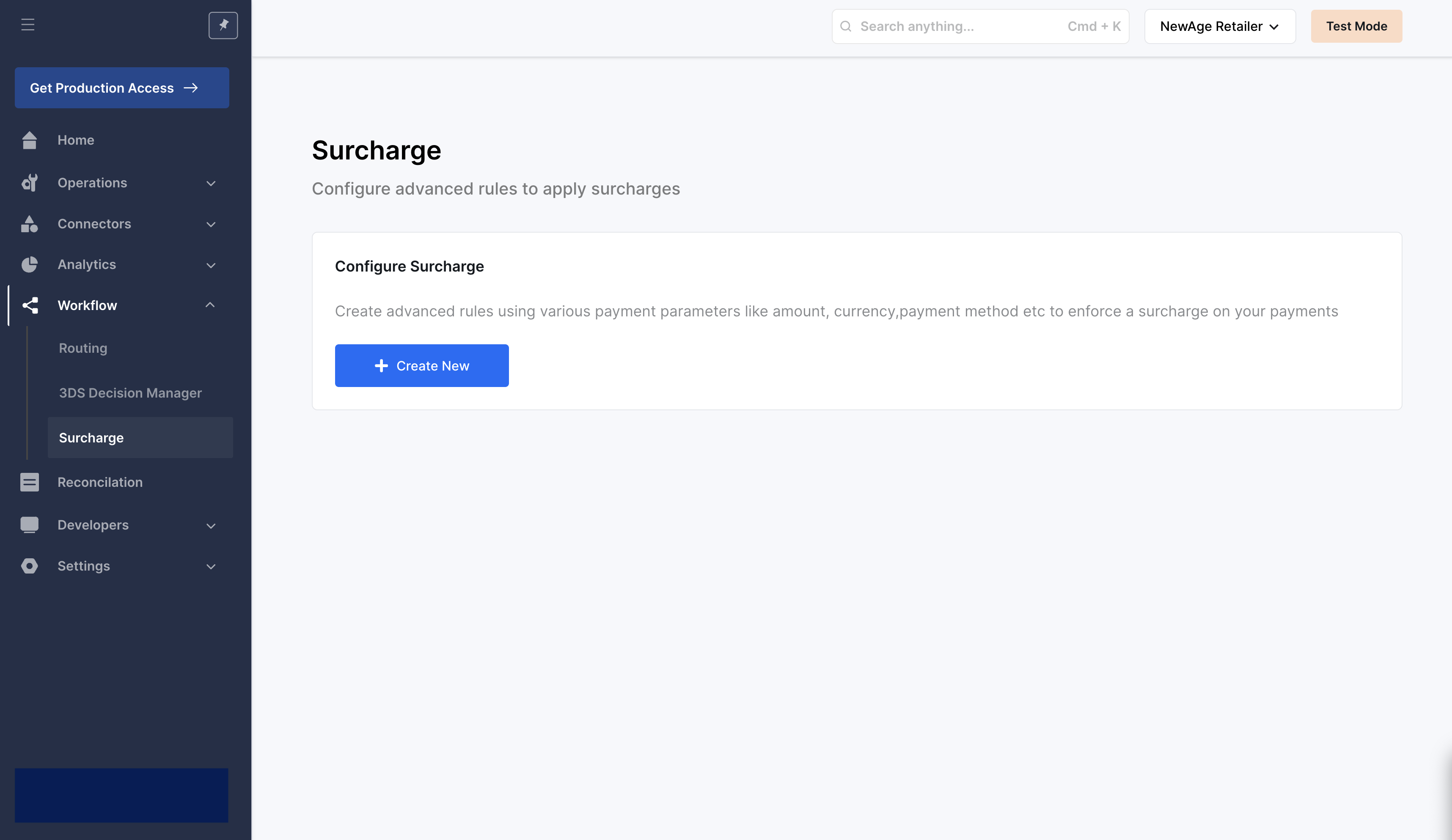 Step 1: Go to Workflow -> Surcharge tab on the OrchestratorX Control Center