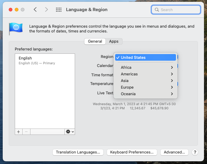 - If you are not located in the supported countries, but still wish to test Apple Pay, please change your Region using Mac System preferences > Language & Region > choose any of the 15 supported countries.