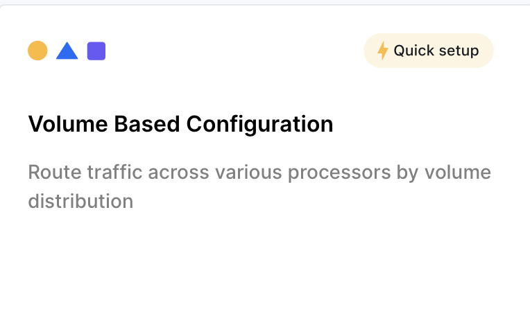 Volume Based Configuration: Define volume distribution among multiple payment processors using percentages.